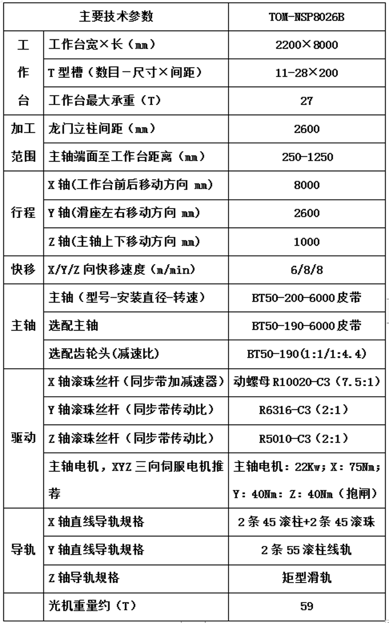 光机技术参数